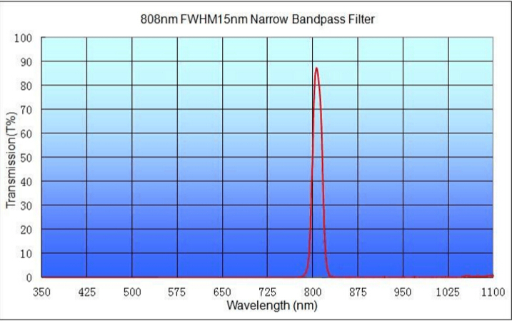 808nm帶通濾光片 十月 16, 2017// 公司產(chǎn)品// 808nm帶通濾優(yōu)點 ?1)適用于有太陽光等強光干擾下工作; 2)透過率最高達90%以上,光信號衰減率小,有效提升工作距離和光強度; ?3)可直接在可見光截止紅外透過玻璃上鍍膜或膠合,迅速提高截止率高,垂直入射時在強紅外燈下無穿透現(xiàn)象, 透光率?小于0.2%。并且確保在大角度下工作,波長短移現(xiàn)象減弱。 ?4)10多年的光學(xué)濾光片生產(chǎn)經(jīng)驗,進口鍍膜機制作,IAD離子輔助鍍膜技術(shù),確保低溫飄,膜層牢固度更強。 808nm帶通濾光片種類指標 ?BP808nm?FWHM=15nm CWL:808nm±4nm ?FWHM:15nm?±4nm ?Tpeak:>75% ?Blocking:Tmax<3%,Tave<1%@400-780?&?836-1100nm Substrate:Float?glass,B270 Circle:φ3-φ50mm Square:3×3-55×55mm ?Thickness:0.55-5mm 808nm帶通濾光片曲線 ? Related Posts 濾光片都可以加工哪些膜層?怎么選擇? 激光雷達光學(xué)鏡片如同汽車的“超級眼睛” 紅外透鏡,紅外硅透鏡介紹